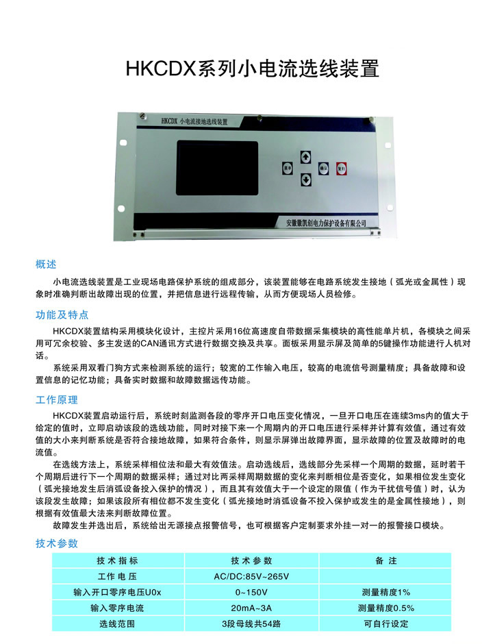 - 產(chǎn)品簡介:???HKCDX系列小電流選線裝置