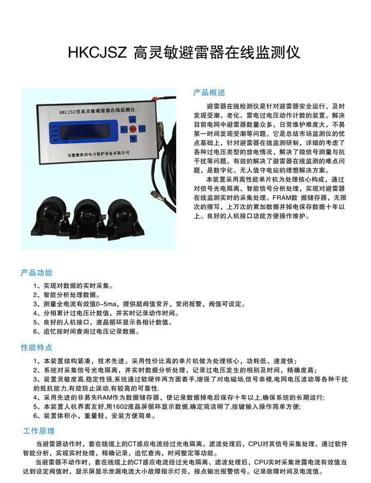 - 產(chǎn)品簡介:???HKCJSZ高靈敏避雷器在線監(jiān)測儀