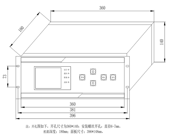 開孔圖如下,開孔尺寸為360*140;安裝螺絲開孔:直徑6~7mm。