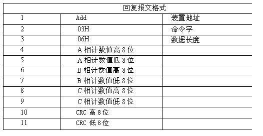HKCJSZ采用類MODBUS(RTU模式)通訊規(guī)約,RS-485通信方式, 波特率為9600bps,1位起始位,8位數(shù)據(jù)位,無校驗,1位停止位,即1字節(jié)數(shù)據(jù)共10比特位。裝置出廠時站號設置為01,用戶可根據(jù)現(xiàn)場情況重新設置。