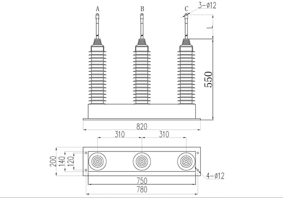 10KV過電壓保護器HKCBP外形安裝尺寸圖